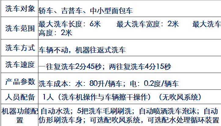 往復機洗車機型號及參數